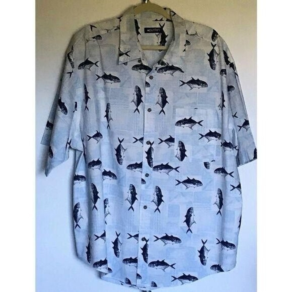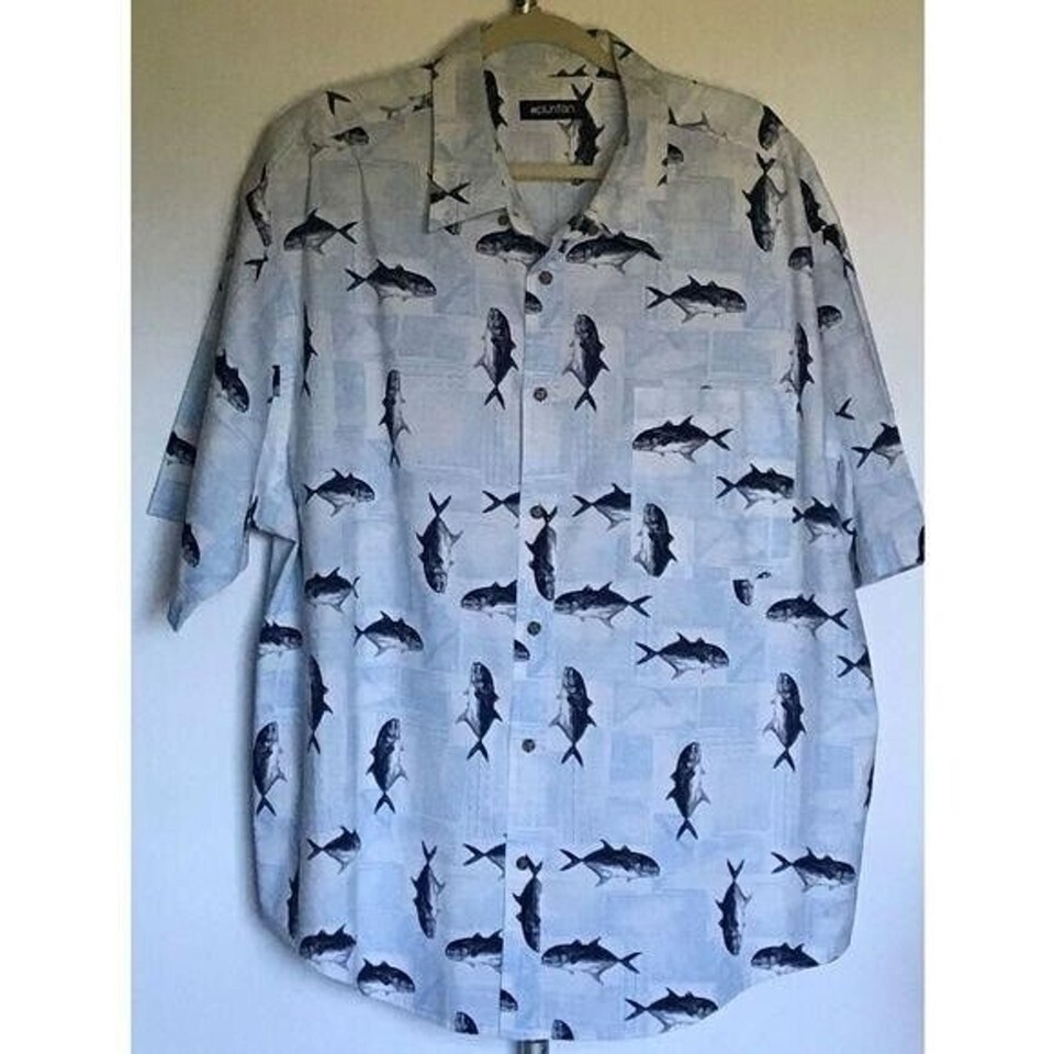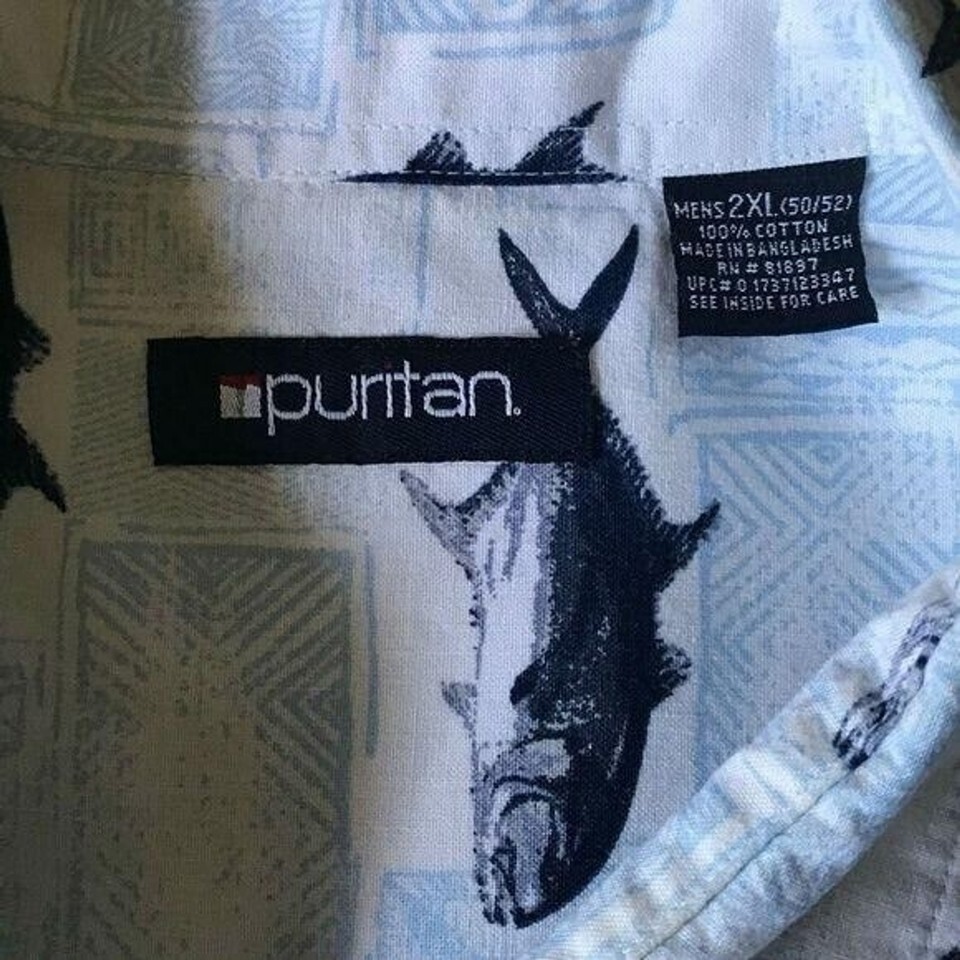 Mens Puritan Short Sleeve Button Front Fishing Blue Hawaiian Shirt 2 XLarge