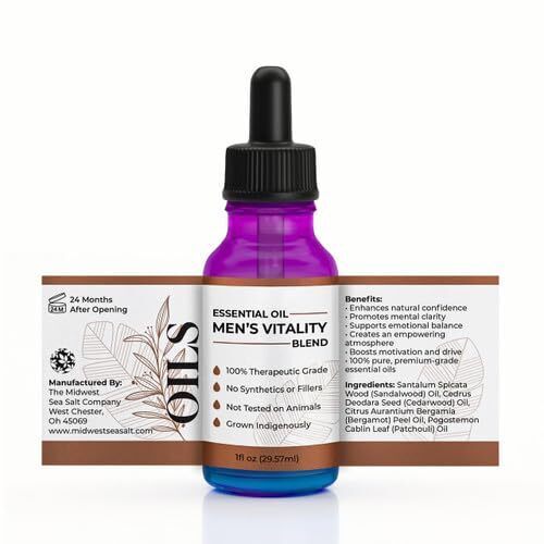 Elevate masculine energy with our distinguished "Men's Vitality" Essential Oil Blend. This sophisticated combination of woodsy and citrus notes creates a powerful, grounding aroma that embodies confidence, strength, and natural vitality. Each meticulously crafted blend of 100% pure, premium-grade essential oils serves to enhance natural confidence, promote mental clarity, and support emotional balance, creating an empowering atmosphere. Perfect for invigorating your morning routine, preparing for workouts, fostering a professional environment, or enriching personal grooming rituals, this essential oil blend is a versatile addition to your daily life.