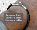 - MENZLYFE Handmade Black BOND & STEEL Euro Style Leather Bracelet Made in USA