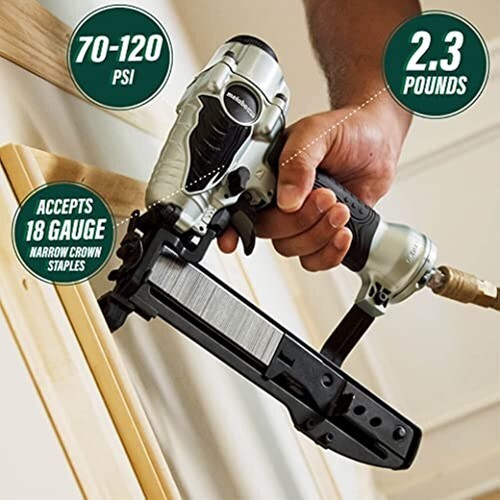 Metabo HPT 1/4-Inch Narrow Crown Finish Stapler | Pneumatic | 18 Gauge | Accepts 1/2-Inch to 1-1/2-Inch Staples | 5-Year Warranty | N3804AB3