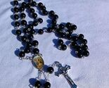 black rosary, Holy Family rosary, midnight rosary, classic rosary, traditional Catholic rosary, black glass beads, silver crucifix, handmade rosary, prayer beads, Christian gift, 8mm rosary