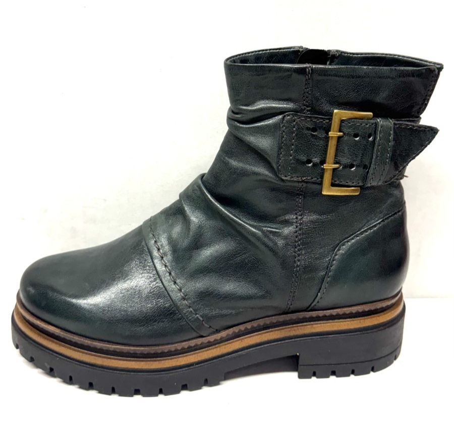 - MIZ MOOZ BUTTER LEATHER BOOTS SIDE ZIP BUCKLE GREEN 37EU / 7US NEW # Z-41