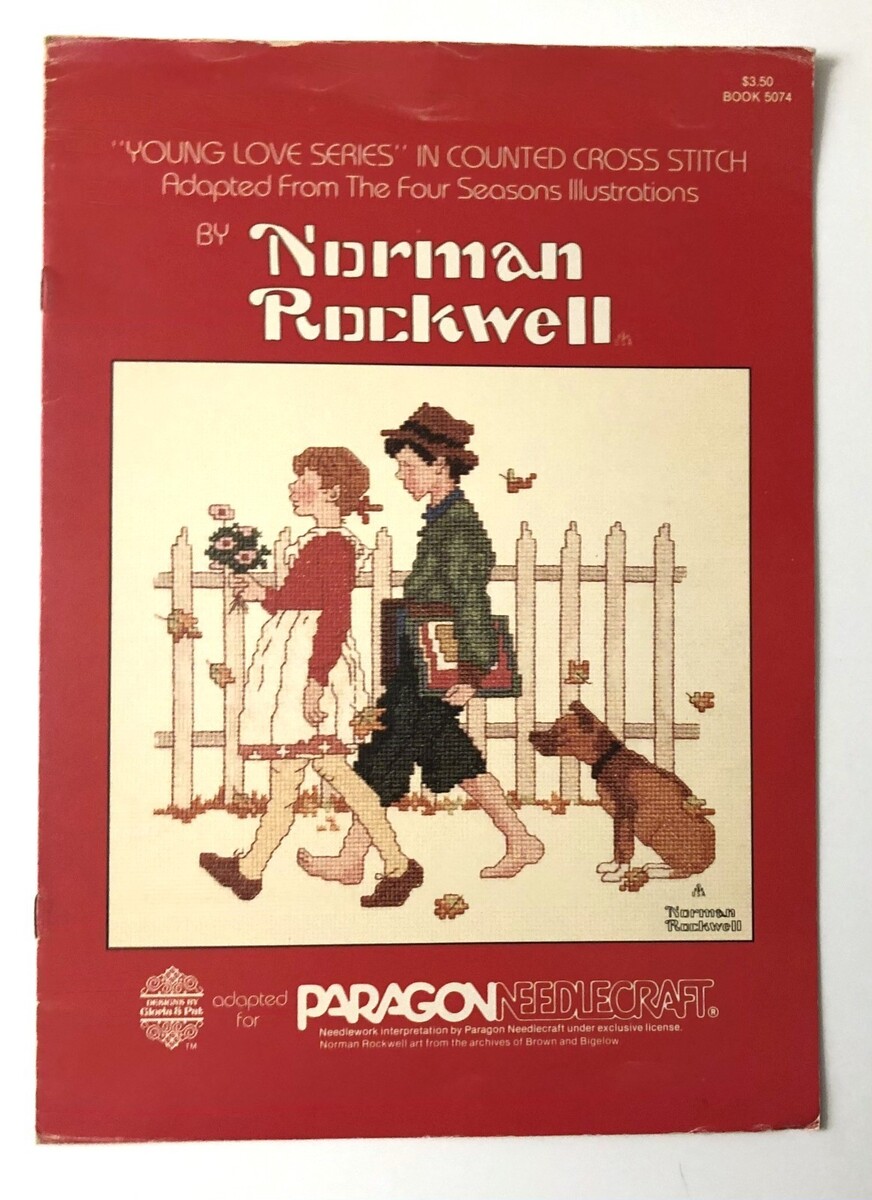 Norman Rockwell "Young Love Series" In Counted Cross Stitch Paragon Needlecraft. The booklet/leaflet is in good clean, vintage condition. I do have other craft books at my shop and have calculated shipping set up for multiple purchases.