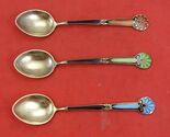 Norwegian sterling silver Demitasse Spoon set of 3 vermeil, enameled red, green and blue, 3 7/8" (maker unknown). It is not monogrammed and is in excellent condition.