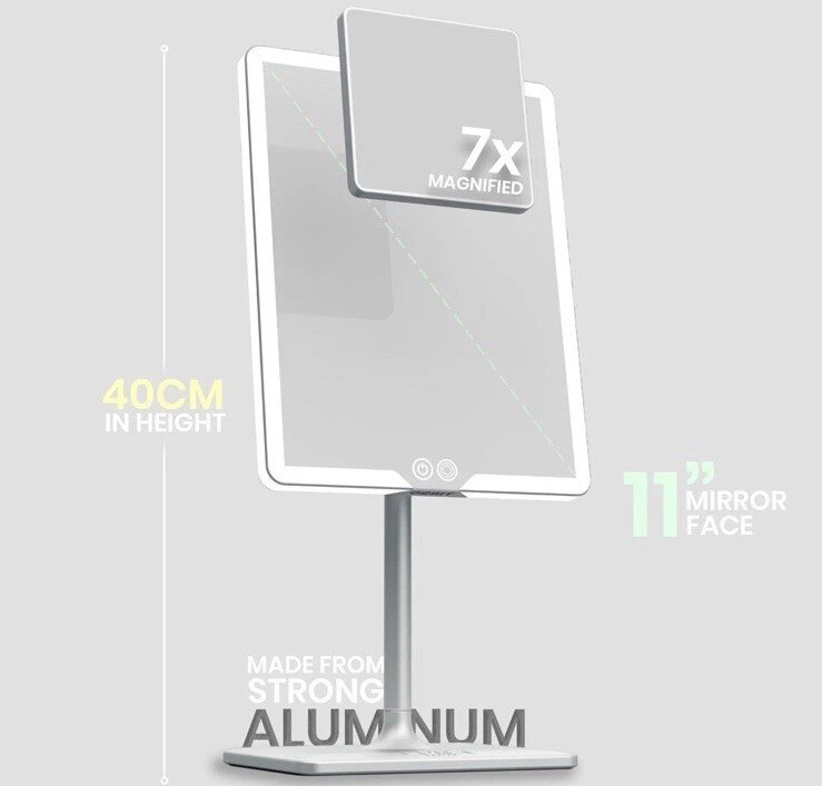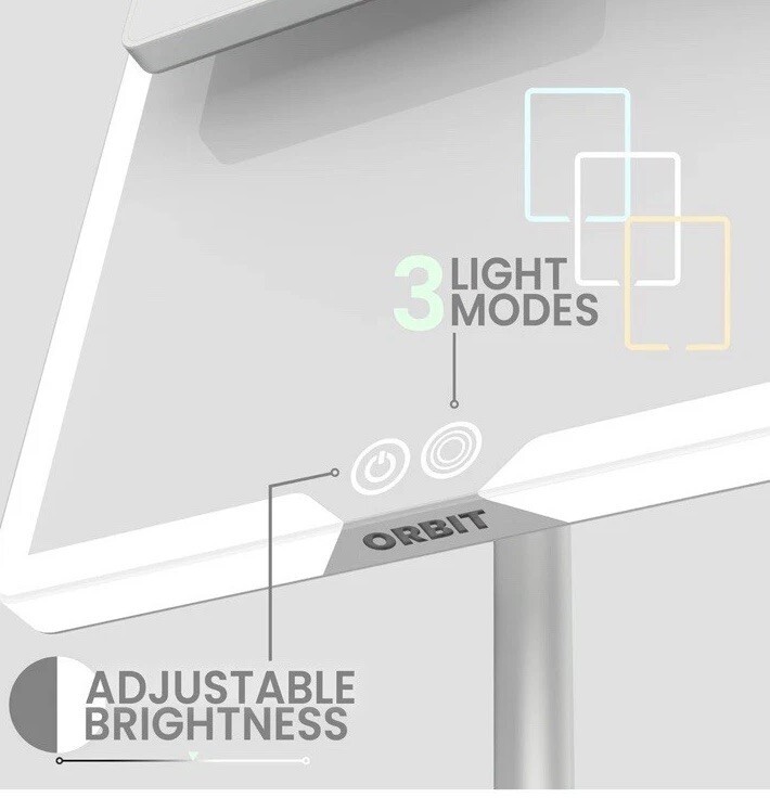 - Orbit Mirror in Chalk Gray Vanity Mirror with Lights, Makeup Mirror, LED Li...