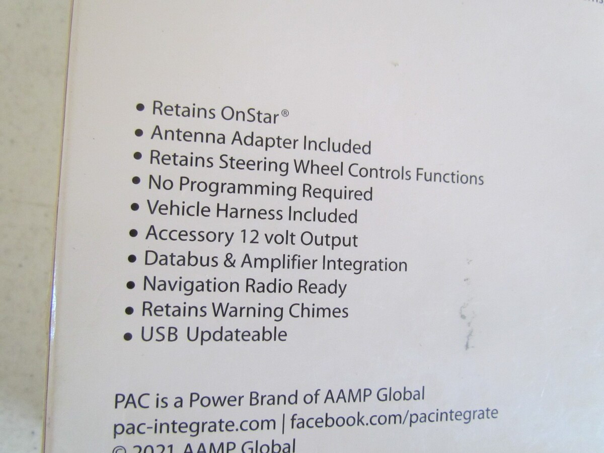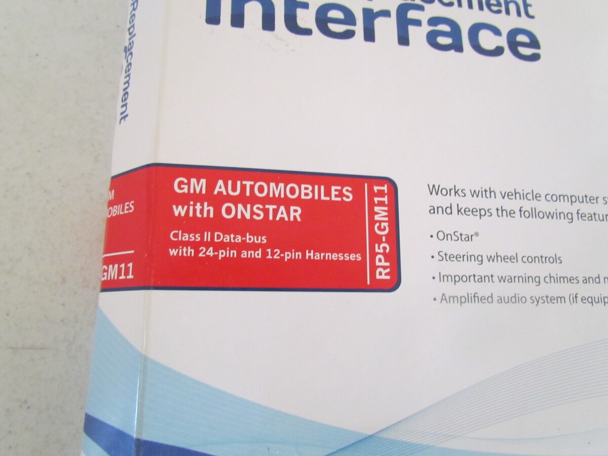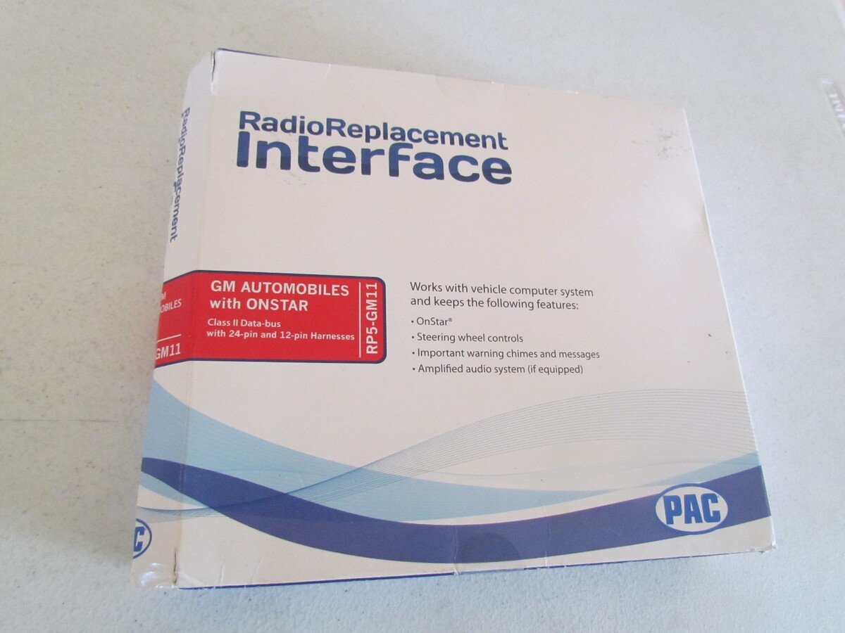 New open box complete I only opened the box to verify that all components were present and unused This RP5-GM11 module is designed for select General Motors vehicles equipped with OnStar and Class II Data-Bus systems Retains OnStar steering wheel controls warning chimes RAP and amplified audio system features when installing an aftermarket radio All harnesses and accessories shown in the photos are included Unused open box complete If you have any issues with product purchased from me please contact me first and give me a chance to address any issues before opening a return or contacting Fast ship I often ship the same day Specs / Features Retains factory OnStar Retains factory warning chimes Retains steering wheel controls Supports Class II Data-Bus vehicles Supports amplified and non amplified systems Provides RAP accessory output Provides navigation ready outputs VSS reverse parking brake Compatible with select GM vehicles with 24 pin and 12 pin data-bus connectors What?s Included Main RP5-GM11 module A109 GM11 HAR V3 harness Steering wheel control output harness Antenna adapter Data-bus and audio harnesses Installation documentation card with QR link to instructions GM Radio Interface Replacement OnStar Class II Data Bus RP5 GM11 PAC Module Harness Steering Wheel Controls Chimes Retention Install Kit
