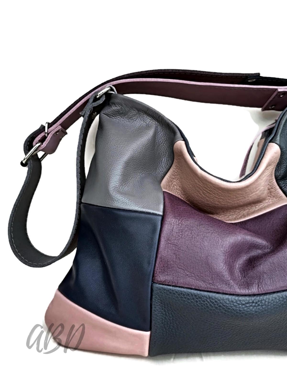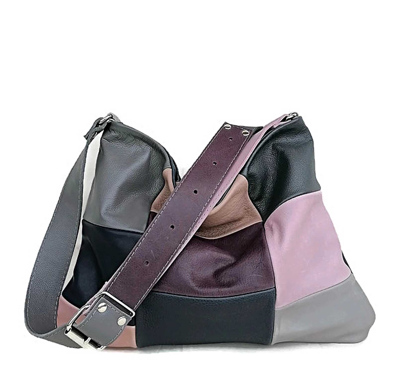 - Patchwork Leather Hobo Bag: Soft Handmade Shoulder Bag