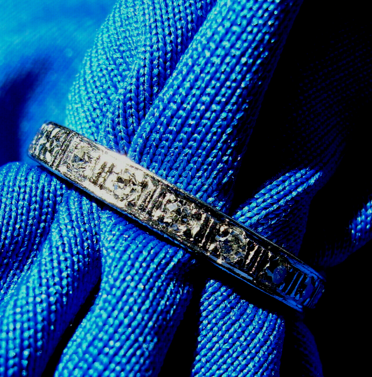 - Pave Diamond Deco Wedding Band Gatsby era Antique Platinum Eternity Ring 6.25