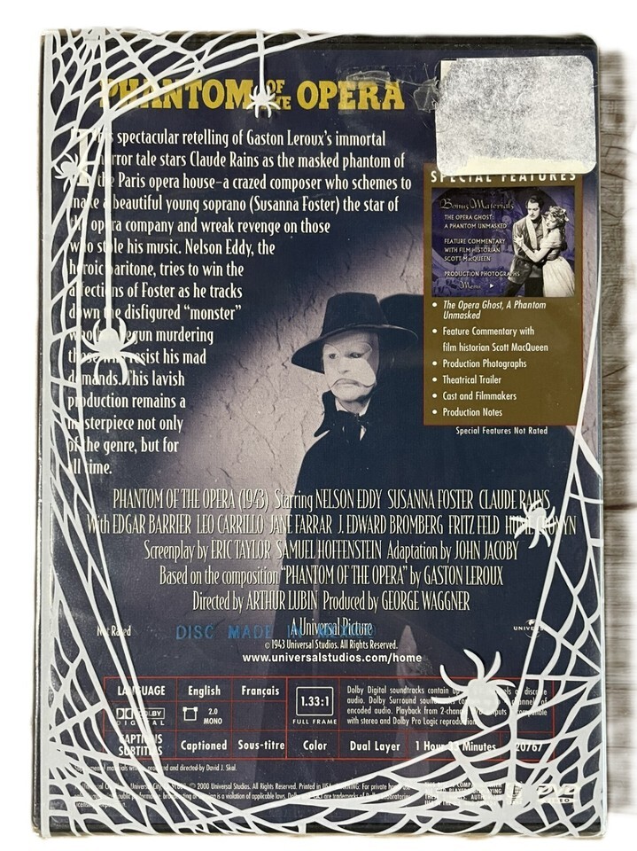 - Phantom of the Opera (DVD, 1943): Classic Horror Monster Movie, New Unopened