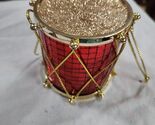 VINTAGE 3" MINIATURE PLASTIC RED GLITTERY DRUM CHRISTMAS ORNAMENT. GOOD CONDITION. THANK YOU FOR VIEWING MY ITEM. GOD BLESS YOU.