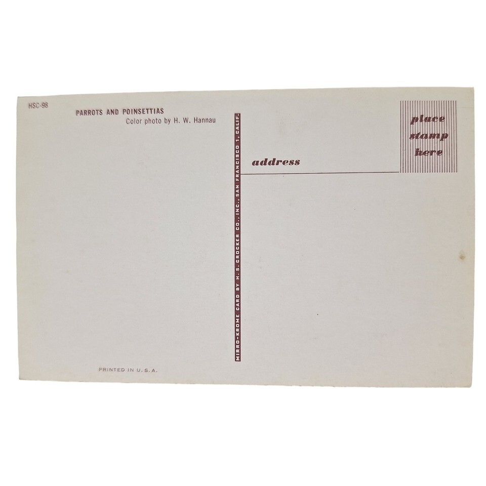 Postcard Parrots And Poinsettias Birds And Flowers Chrome Unposted Condition is consistent with an old or antique paper postcard. It may have corner bumps, creases, ink stains, pencil or pen markings, an old smell, etc 2128