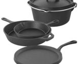 - Premium 5-Piece Cast Iron Cookware Set with Dutch Oven, Griddle and 2 Skillets