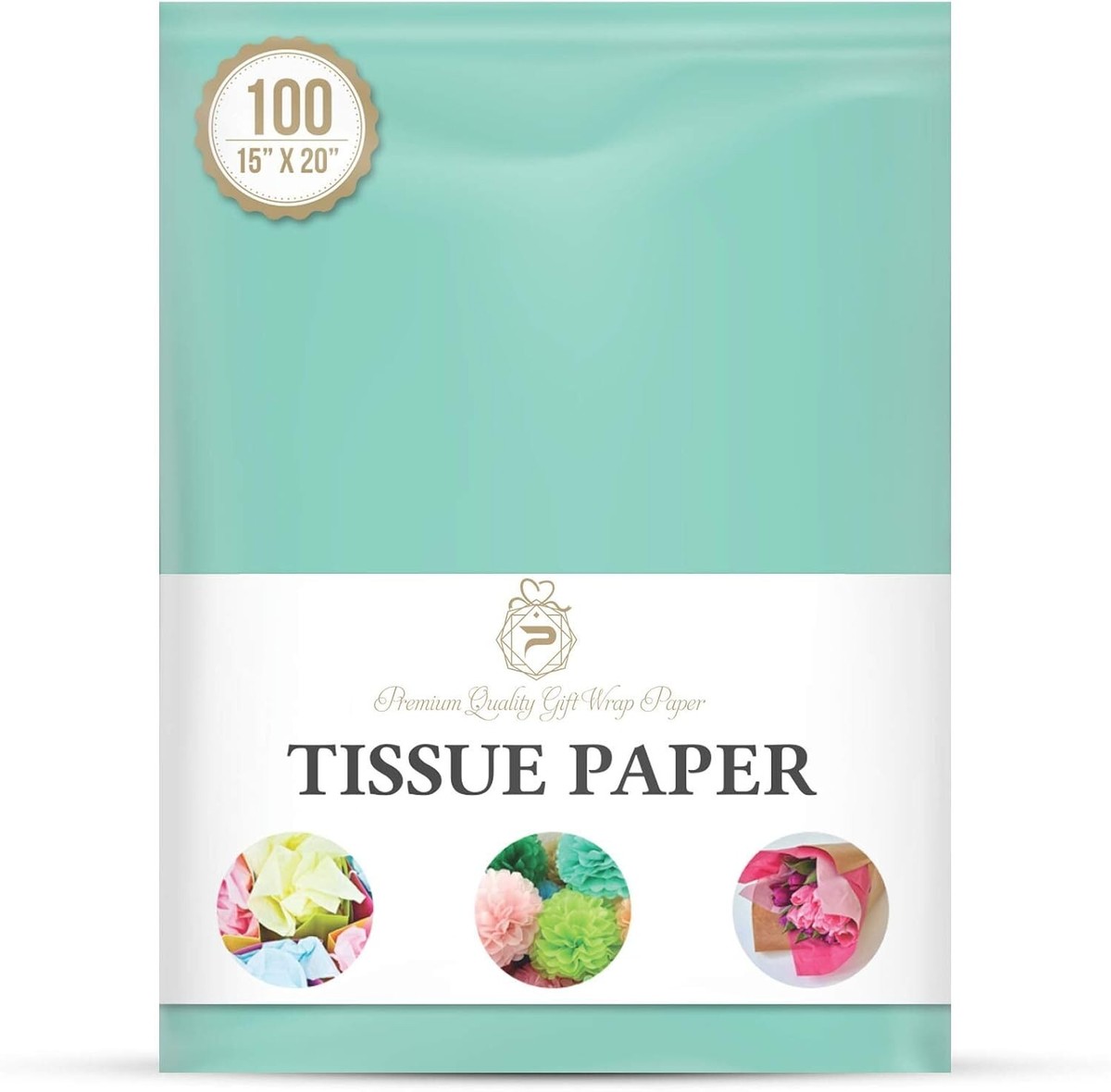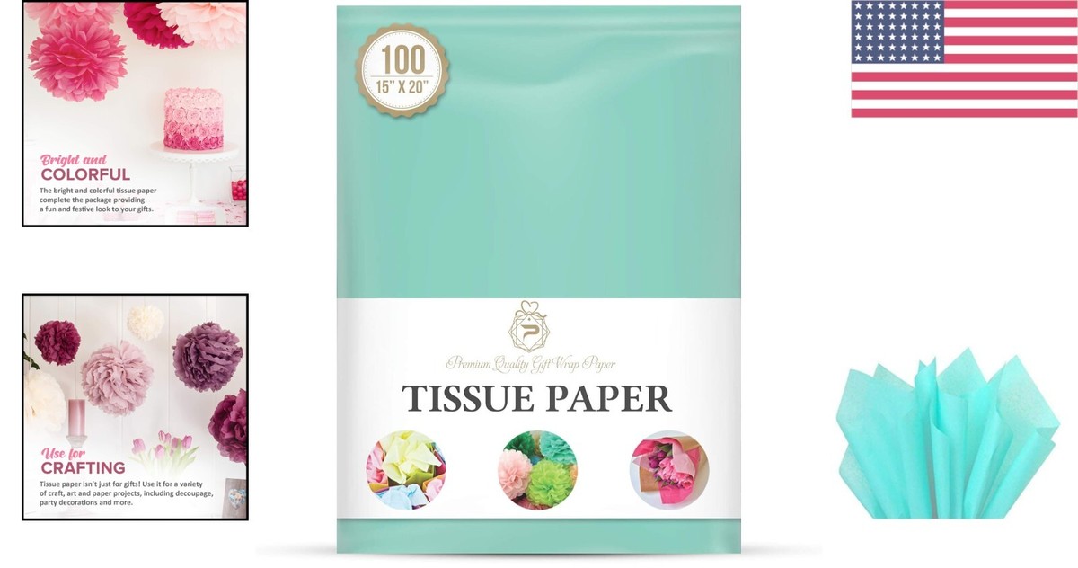 Premium Aqua Blue Floral Tissue Paper - 100 Sheets, Perfect for Parties Crafts