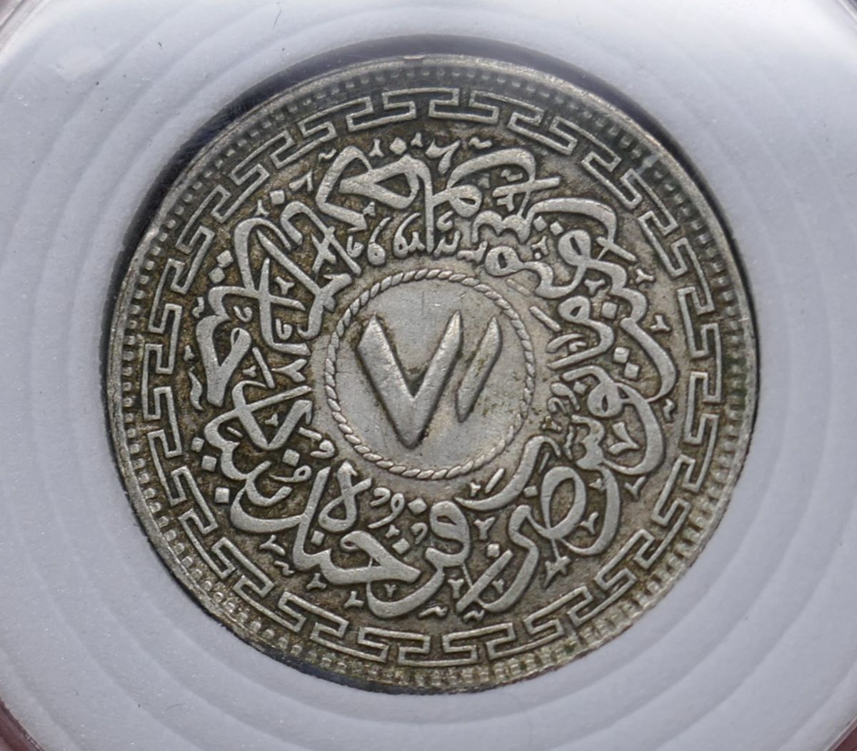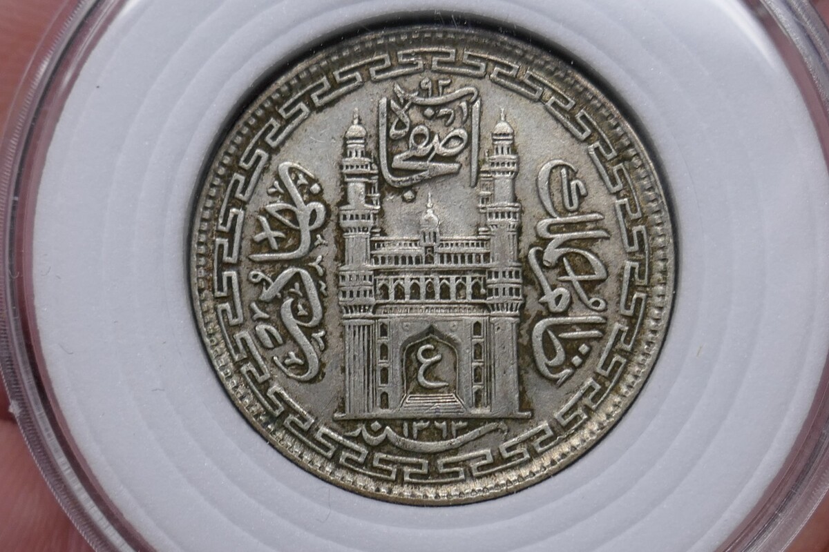 Princely state of Hyderabad 1363 (1944) 8 Annas Mir Usman Ali Khan Silver Coin
