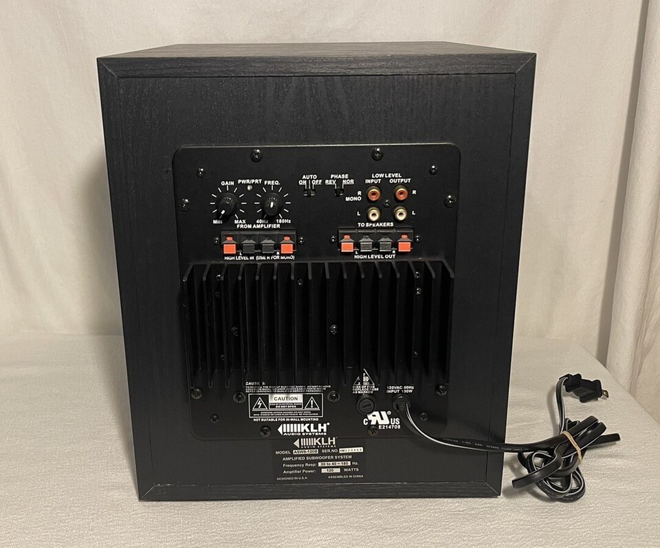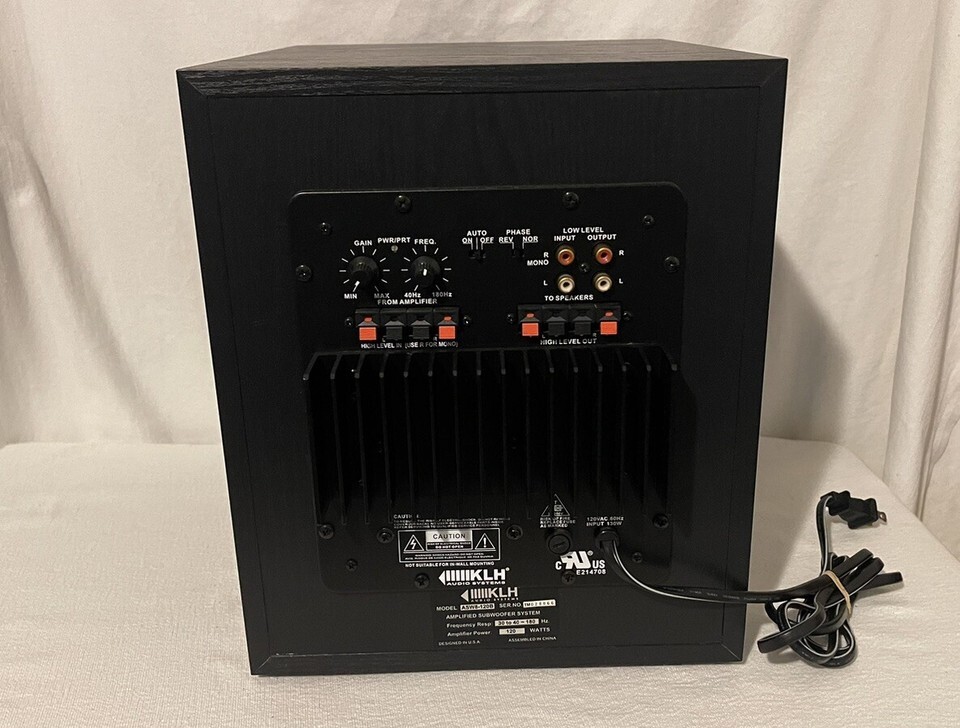 This is a rare and clean KLH subwoofer model ASW8-120B. It is a high-quality subwoofer that produces incredible sound. The subwoofer is powered and comes in black color. It is a wired subwoofer that is perfect for use in your home audio system. The subwoofer is in excellent working condition and produces deep, rich bass that will enhance your listening experience. It is a must-have for any audiophile who wants to take their music listening to the next level. With its sleek black finish, it will look great in any home audio setup. Get your hands on this rare and clean KLH subwoofer today and start enjoying the ultimate listening experience!