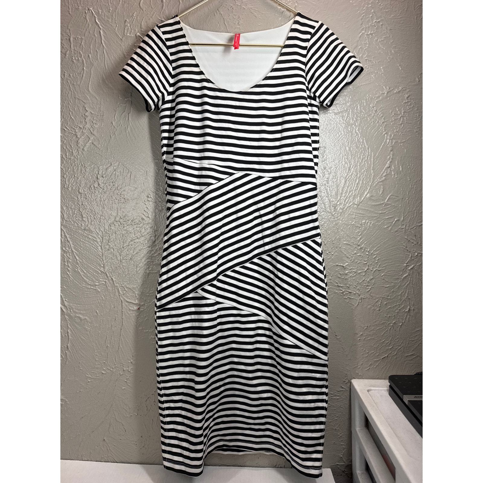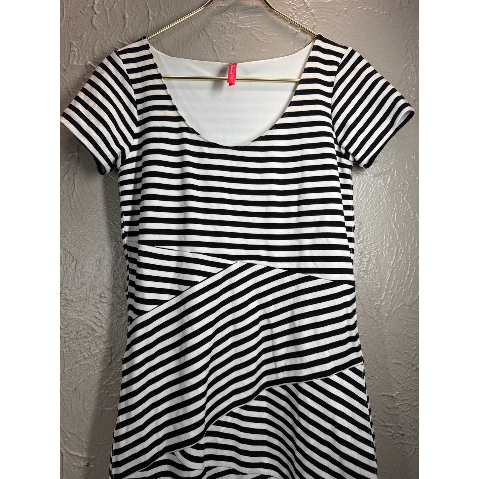 Ruby Ribbon Black White Striped Fitted Sheath Dress Shapewear Preppy Size Small
