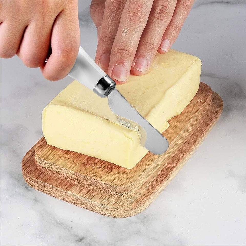 COMVENIENT BUTTER KNIFE: The knife on butter tub lid groove is made of 304 stainless steel. It can be used not only to cut butter, but also can be used to spread bread.