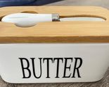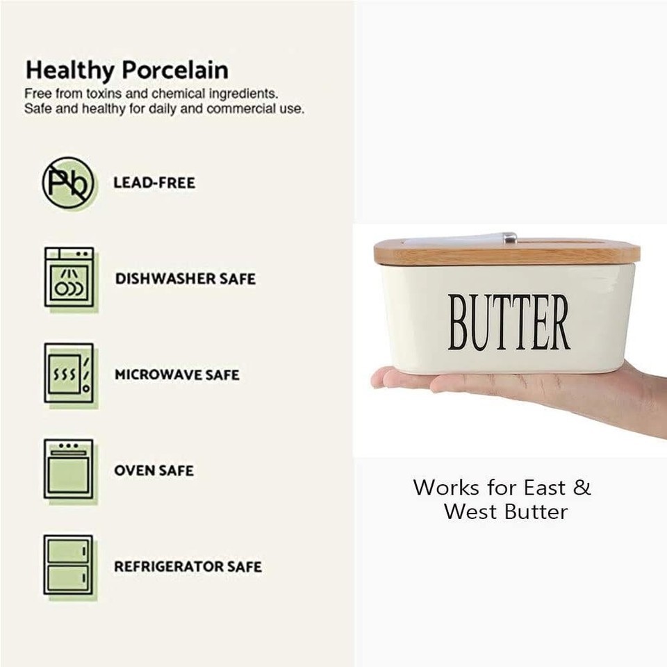 PREMIUM QUALITY: Porcelain butter dish with thick wall, heat-resistance up to 610 degrees,to be used in microwave,oven,freezer. White porcelain butter dish with natural bamboo lid brings natural style to any modern kitchen.