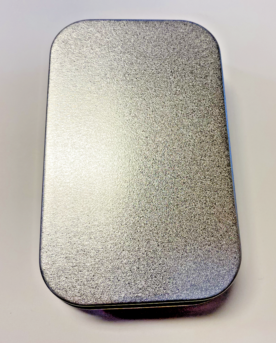 The box measures approximately: 4"x 2.59" x 7/8"d. Made of tin See pictures for details.