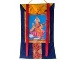 This is an original hand-painted Saraswati Painting with a traditional silk brocade. This is a beautiful and vibrant artistic
