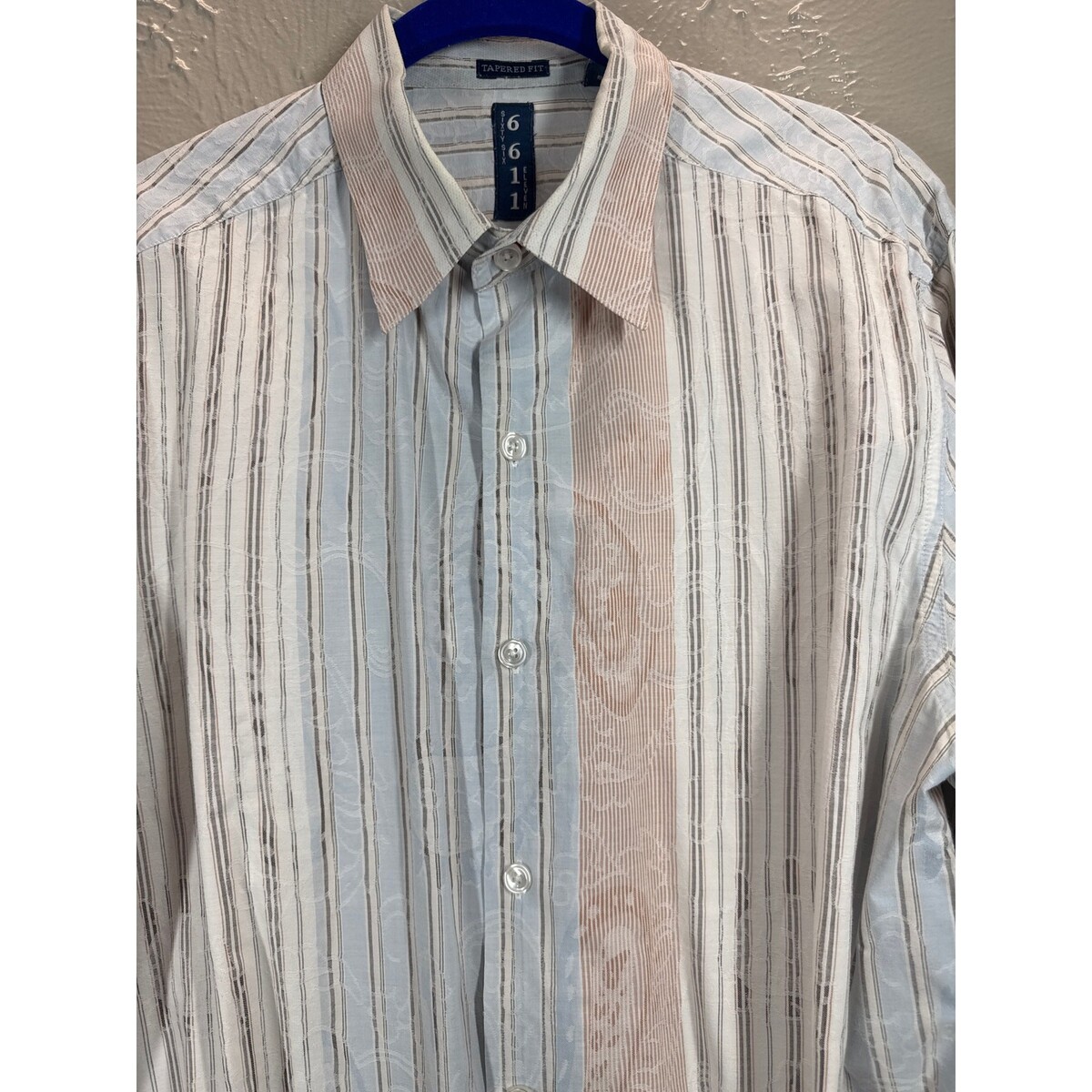 Sixty Six Eleven Mens Shirt Tapered Fit White Black Blue Red Striped Size Medium This item has been cleaned per's used clothing policy.