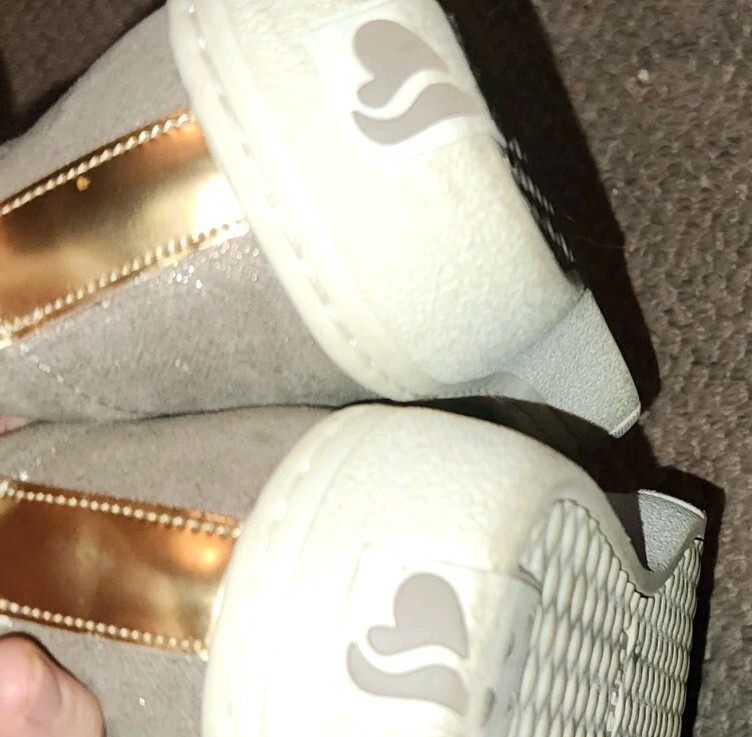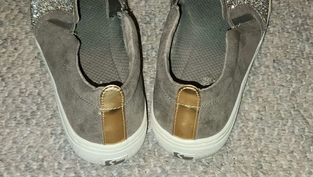 Good used size 11 shoes. One shoe has a small tear near the tongue. Size 11. Sparkle gold and gray. Don't Forget to Follow See photos as they are an important part of the description and will help you know what you are buying. We do our best to describe all items but Sometimes we miss things so the photos are important. . Please Please ask questions. Thanks for bidding and good luck. Check out all my items for some great finds. Lots of cool stuff at my sales. can combine shipping on most. All clothing items are washed according to policy.