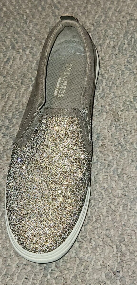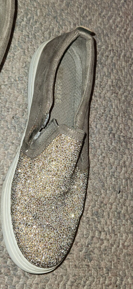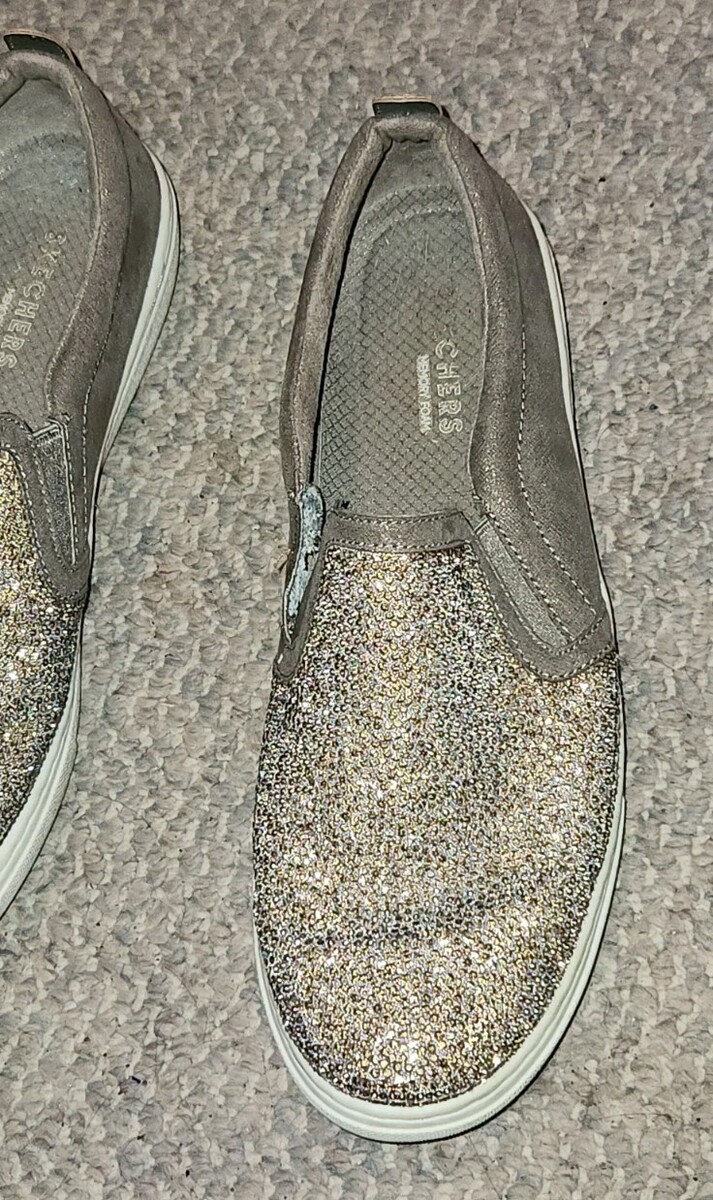 Primary image for Skechers Womens Sparkley Gold Gray Slip On Shoes Size 11 Memory Foam