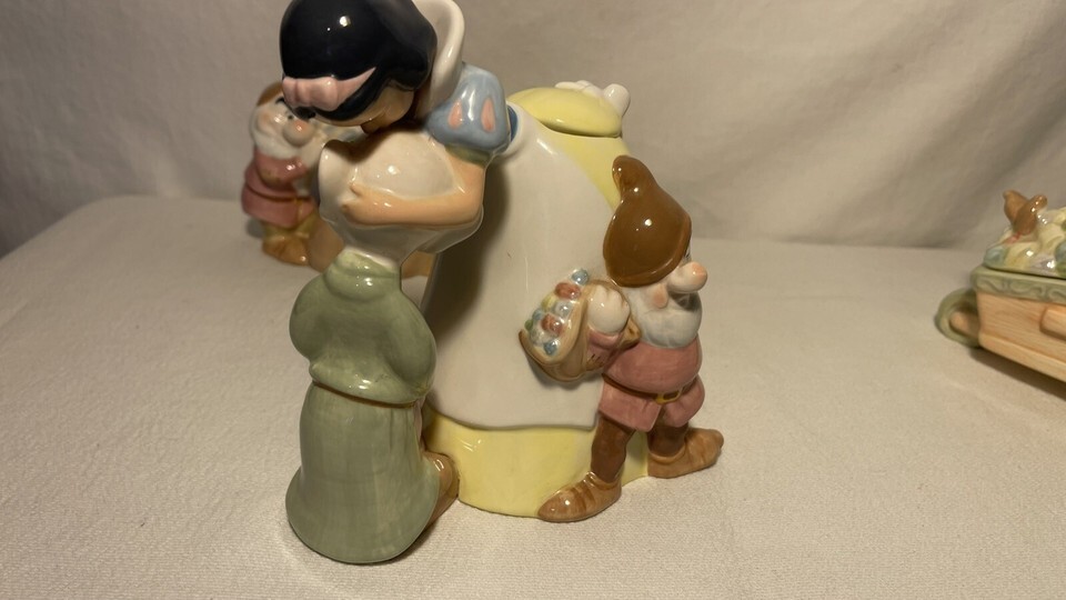 This Snow White and Seven Dwarfs tea set is a must-have for any Disney collector. Made in China, this set features intricate details of the beloved characters from the classic movie. The set includes a teapot, creamer, and six cups and saucers, all adorned with the iconic dwarfs. Perfect for display or for enjoying a cup of tea, this set is a great addition to any collection. The franchise is a contemporary piece, dating back to 1968 and is part of the Disneyana category. Add this unique and charming set to your collection today.