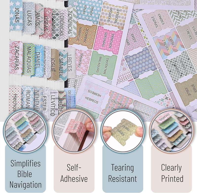 Spanish Bible Tabs, 75 Tabs, Laminated Bible Tabs for Women and Men, Bible Tabs
