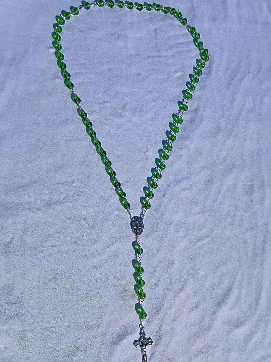 Spring Renewal ? 8mm Transparent Green Glass Rosary with Silver Crucifix