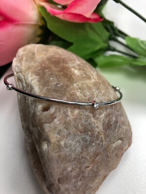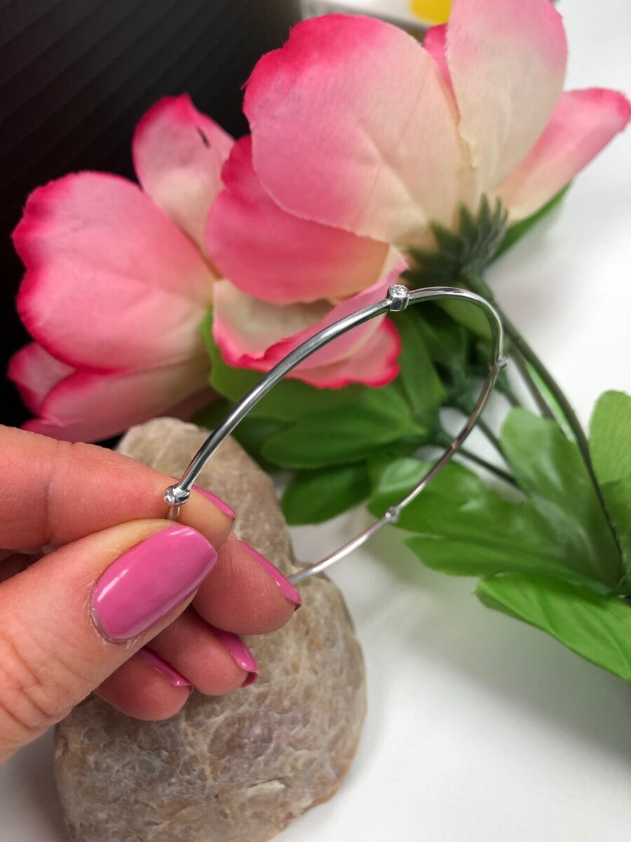 Stackable Eternity Bangle Women's Bracelet Slip-on 0.15Ct Diamond 14k White Gold