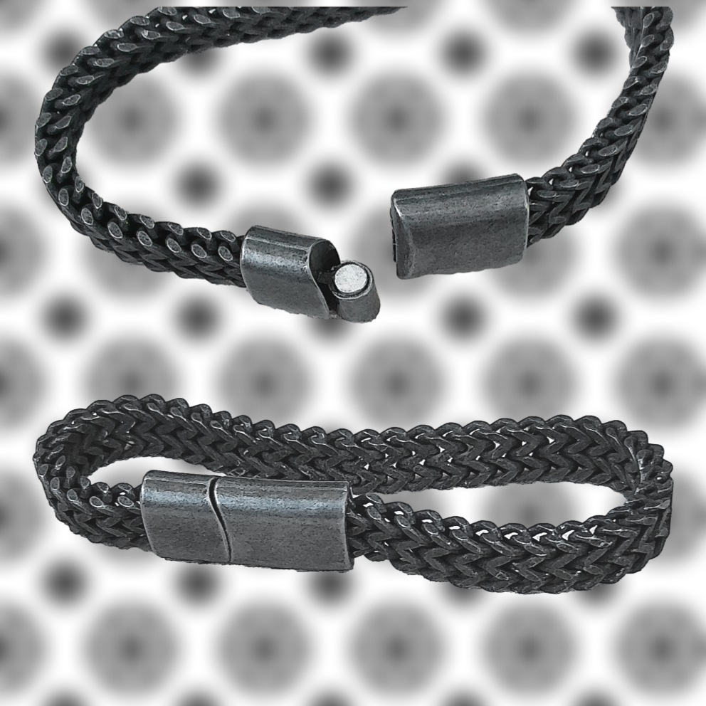 This USA DEALS NOW stainless steel bracelet blends industrial strength with a minimalist edge. Crafted from woven high-quality stainless steel, it features a durable chain design in a matte silvery grey finish ? giving it that rugged, raw-metal look without compromising comfort.
