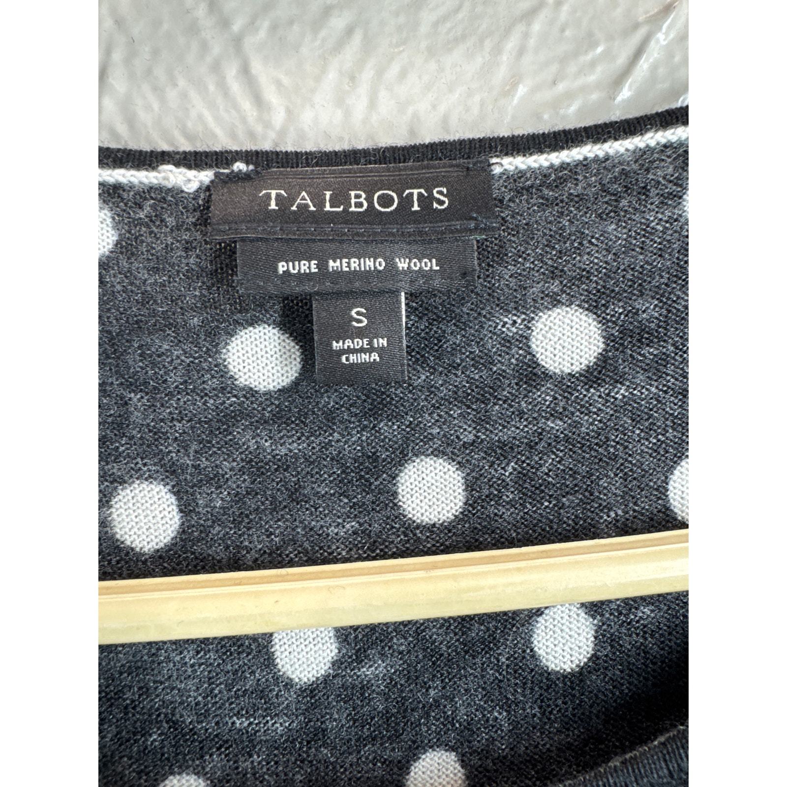 - Talbots Black Merino Wool Polka Dot Lightweight Sweater Round Neck Size Small