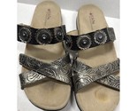 - Taos Sandals Womens Slide Pewter Leather Slip On Medallion Size 9