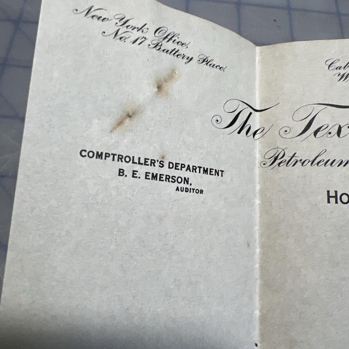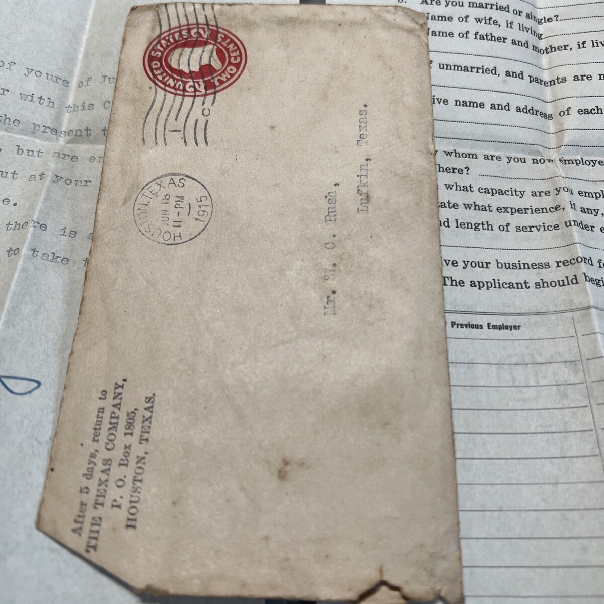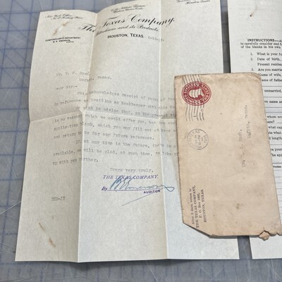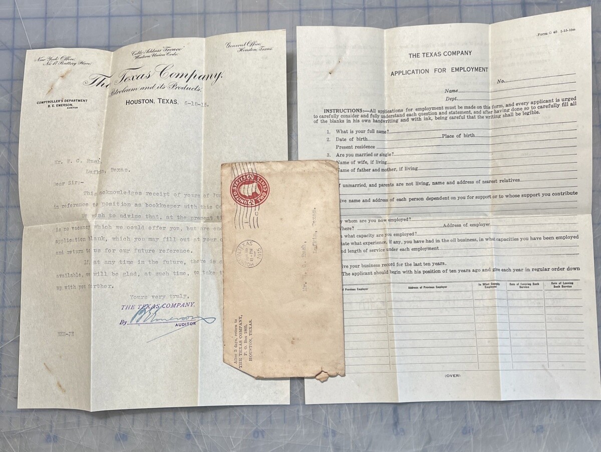 - Texaco 1915 Rejection Letter Texas Company Signed B.E. Emerson Blank Application