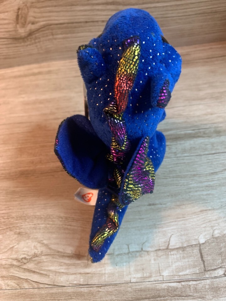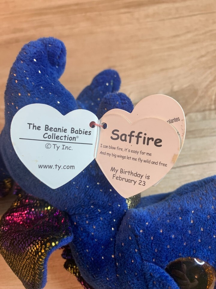 Introducing the Beanie Babies Collection's Saffire the Dragon! This plush toy is a must-have for any collector or fan of Ty products. With its intricate design and attention to detail, Saffire is sure to bring a smile to your face and a touch of magic to your collection.