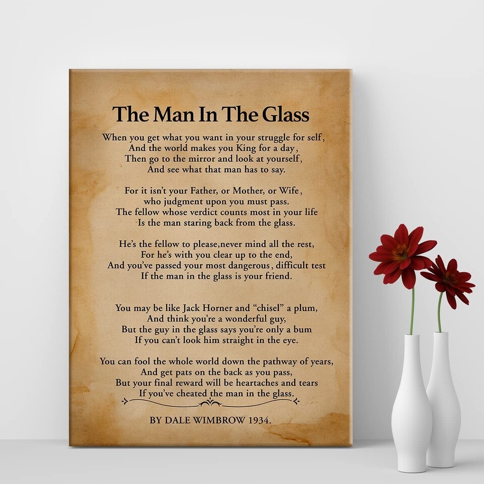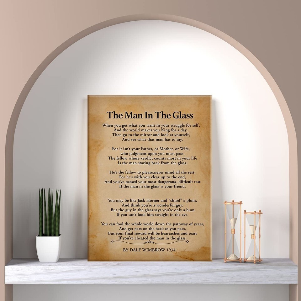 The Man in The Glass Poem Tin Sign Poster Vintage Canvas Wall Art Decor 12"x15"