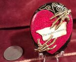 A unique stunner. Golden skelly hands embrace a bleeding broken and lonely heart. The Night's Silence. The Rock is sealed in resin, so fine for using indoors or out. Coin in photo for scale. We will include a Rock stand.