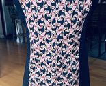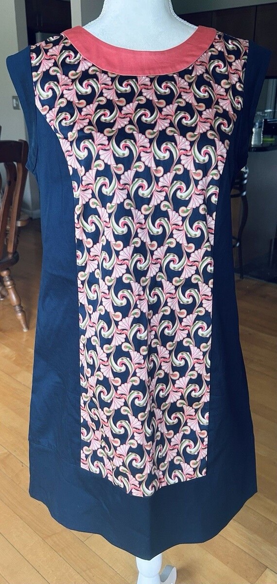 The Webster Miami sleeveless shift dress in size 10 features a navy base with a multicolored design, perfect for various occasions like parties, casual wear, or business events. This knee-length dress made of cotton has a scoop neck, a zip closure, and a stylish shift silhouette that is sure to make a statement. Ideal for women looking for a versatile and chic outfit that combines comfort with a touch of flair.