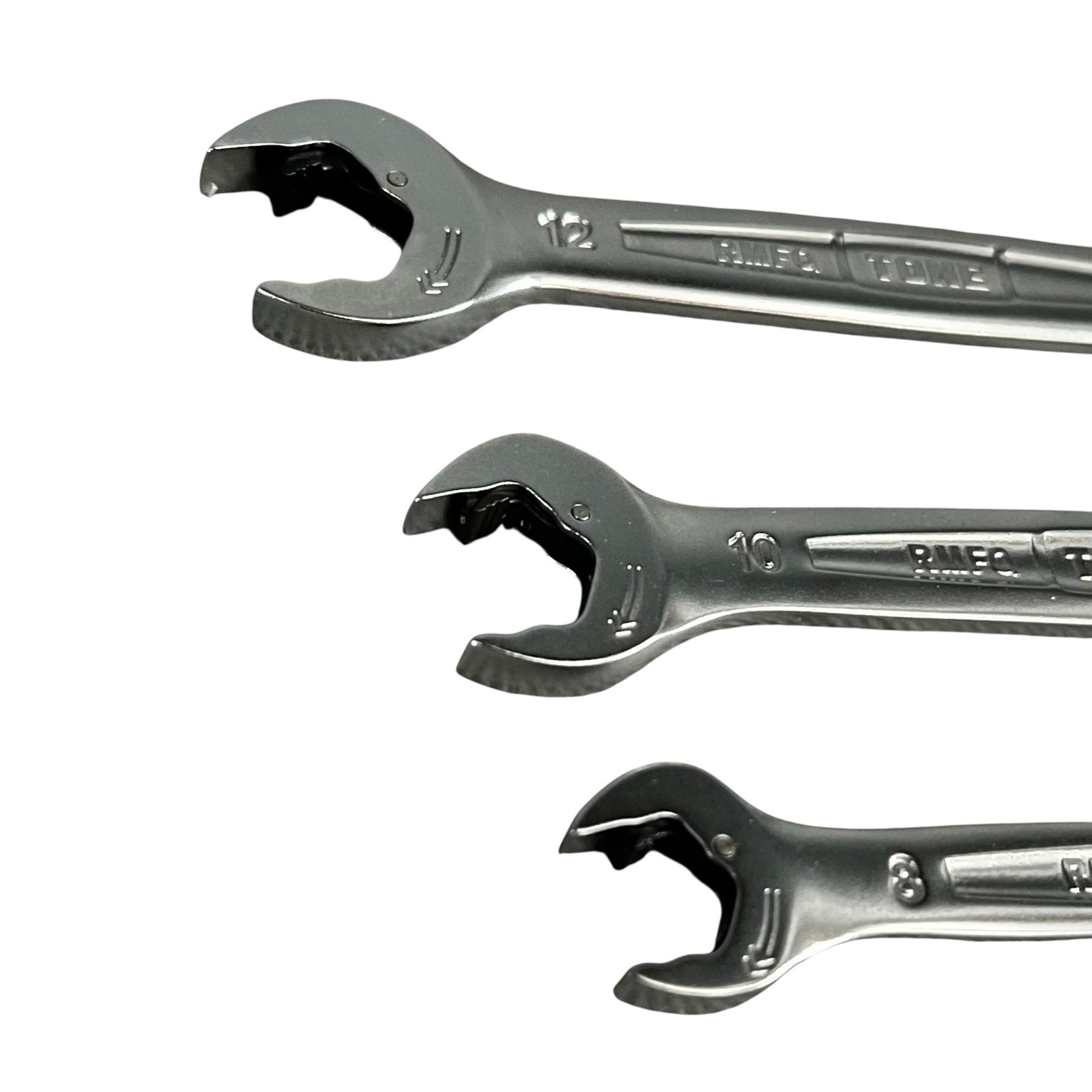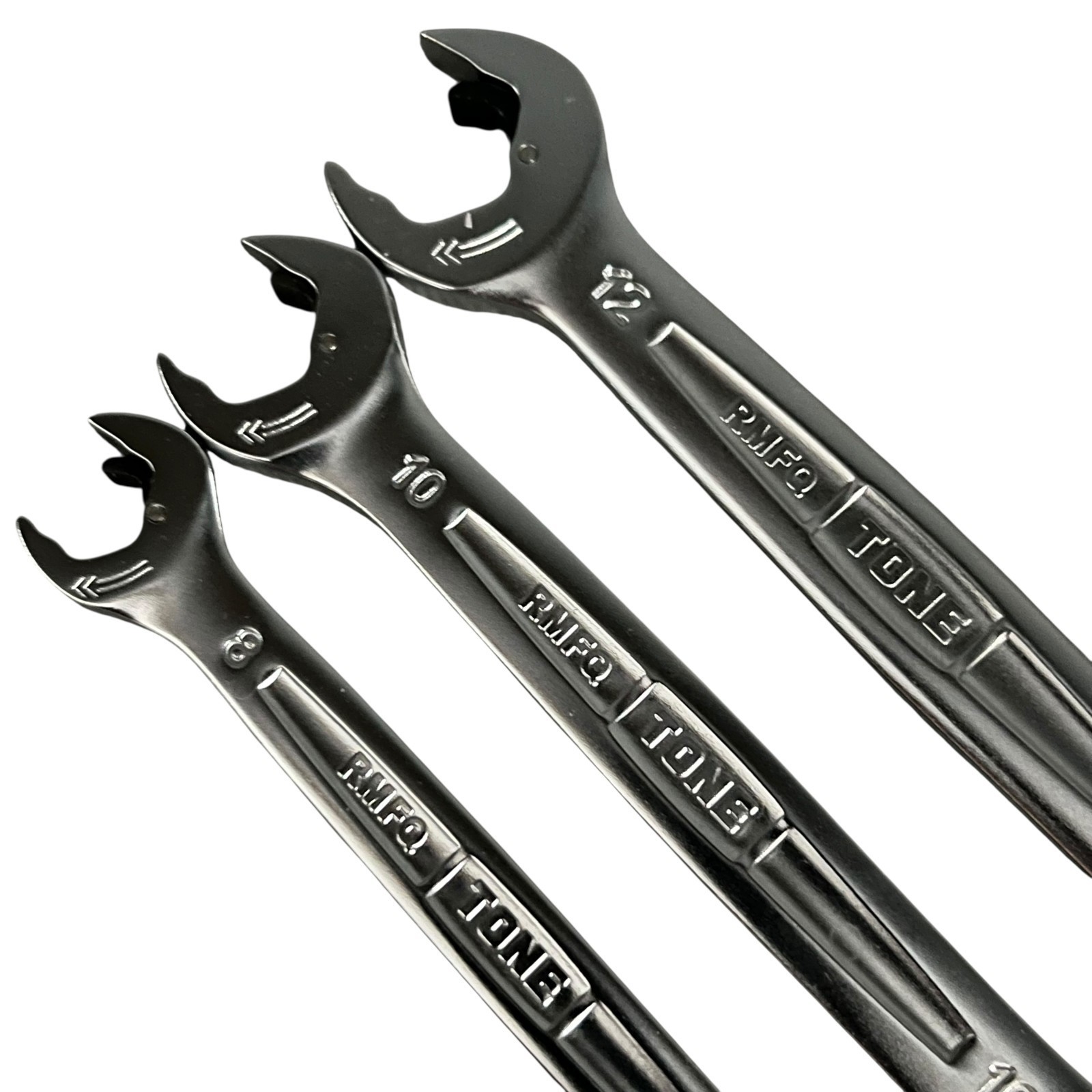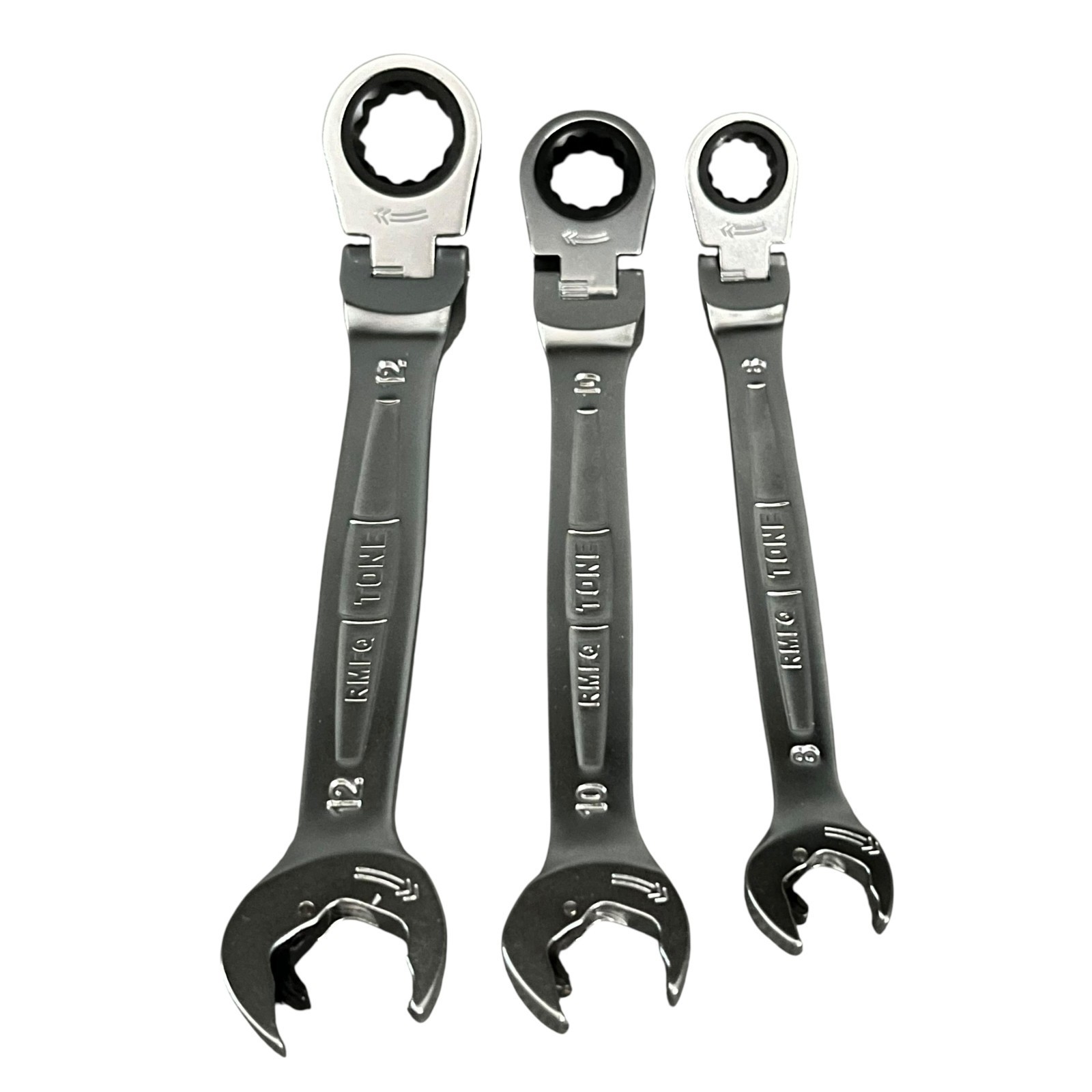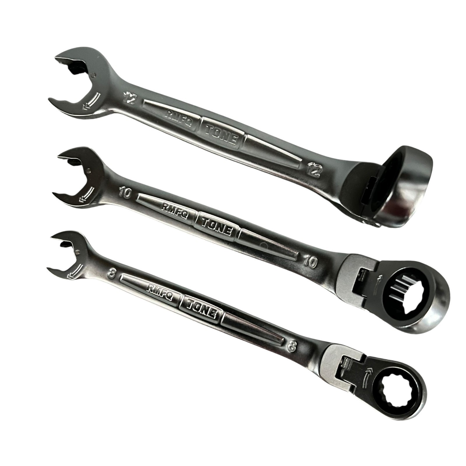 - Tone RMFQ300 3-piece flex-head ratcheting wrenches with Quick Ratchet open end