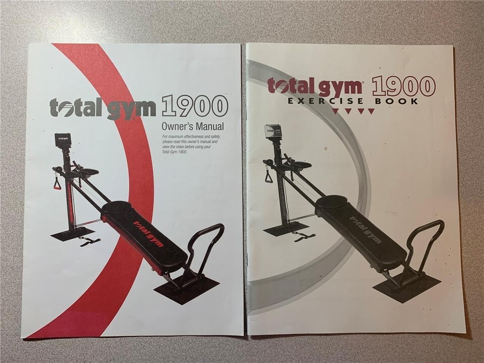 Total Gym 1900 Owners Manual AND Exercise Guide Description Please see my store for other Total Gym Accessories, Training Aids and Spare Parts. If you don't see an item, message me and it would be my pleasure to help you find it. See my reviews to buy with confidence. I will treat you the way I would want to be treated. Original Set of Owner's Manual and Exercise Guide for a Total Gym 1900 Model. (not affiliated with Total Gym Fitness, LLC) Create your brand with Auctiva's Customizable Templates. Attention Sellers - Get Templates Image Hosting, Scheduling at Auctiva.com.