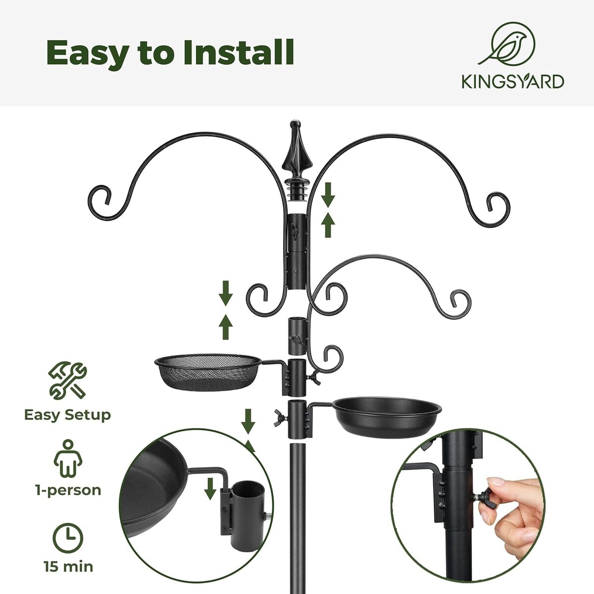 Complete Feeding Bathing Kit: Includes an 85-inch bird feeder pole with a 5-prong base, 3 wide hooks, 1 water bowl, and 1 food tray; provides an all-in-one solution for feeding, watering, and bathing garden birds.