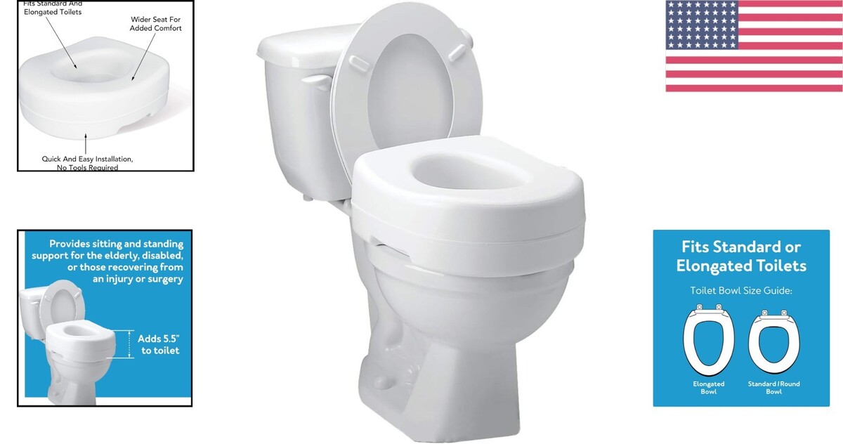 - Universal Toilet Seat Riser - 5.5 Inch Elevation, Fits Round & Elongated Toilets