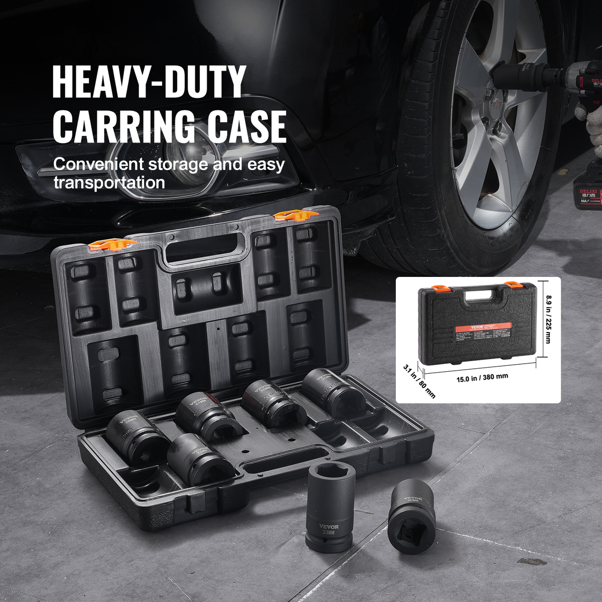 - VEVOR 1" Drive Impact Socket Set, 8 pcs Deep Socket, 6 Point Cr-Mo Alloy Steel