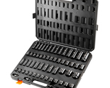 Abundant Components: Includes 1/2" SAE deep sockets - 3/8"?7/16"?1/2"?9/16"?5/8"?11/16"?3/4"?13/16"?7/8"?15/16"?1"?1-1/16"?1-1/8"?1-1/4"; 1/2" metric shallow sockets: 9, 10, 11, 12, 13, 14, 15, 16, 17, 18, 19, 21, 22, 23, 24, 27, 30, 32mm; 3/8" SAE deep sockets: 5/16"?3/8"?7/16"?1/2"?9/16"?5/8"?11/16"?3/4"?13/16"; 3/8" metric shallow sockets: 6?7?8?9?10?11?12?13?14?15?16?17?18?19mm, two extension bars and 2 adapters.