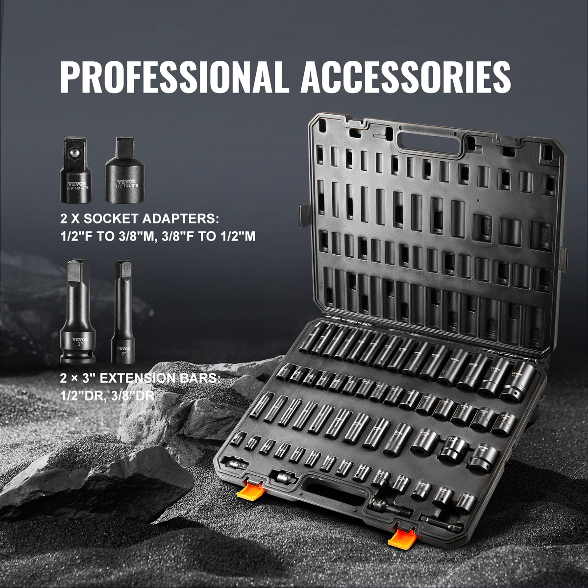 - VEVOR 3/8" & 1/2" Drive Impact Socket Set, 59pcs Set, 6 Point Cr-Mo Alloy Steel