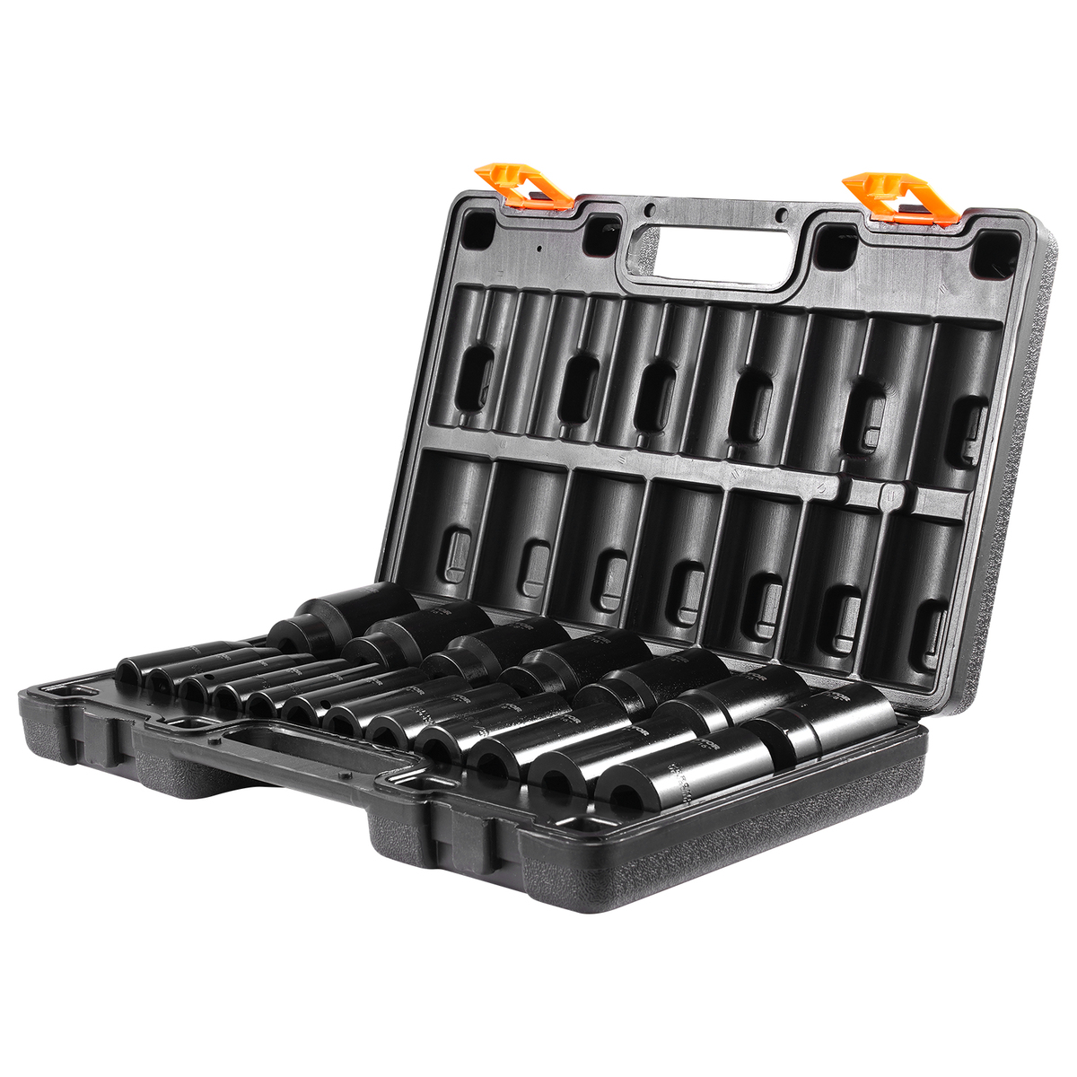 ?19 SOCKETS INCLUDED?- This effort-saving 1/2 inches drive impact socket set comes with 19 deep impact drive sockets: 3/8'', 7/16'', 1/2'', 9/16'', 5/8'', 11/16'', 3/4'', 13/16'', 7/8'', 15/16 '', 1'', 1-1/16'', 1-1/8'', 1-3/16'', 1-1/4'', 1-5/16'', 1-3/8'', 1-7/16'', 1-1/2''.