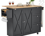 VEVOR Kitchen Island Cart, 45.3" Wood Top Mobile Carts with Storage Cabinet