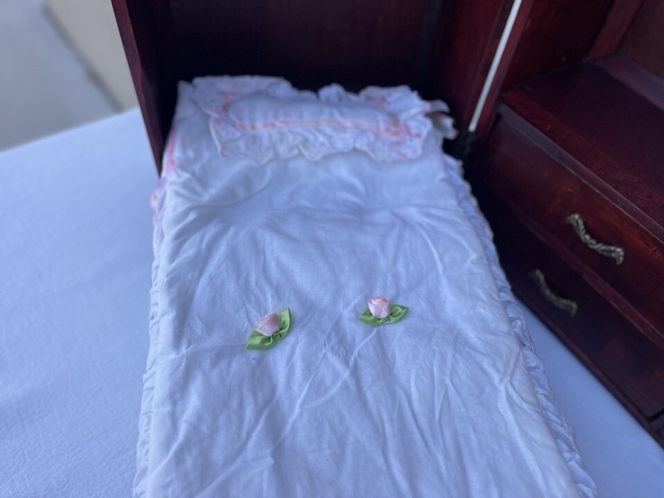 VTG American Girl Wood Doll Carry Case Wardrobe Trunk w/BED,Comforter & Extras