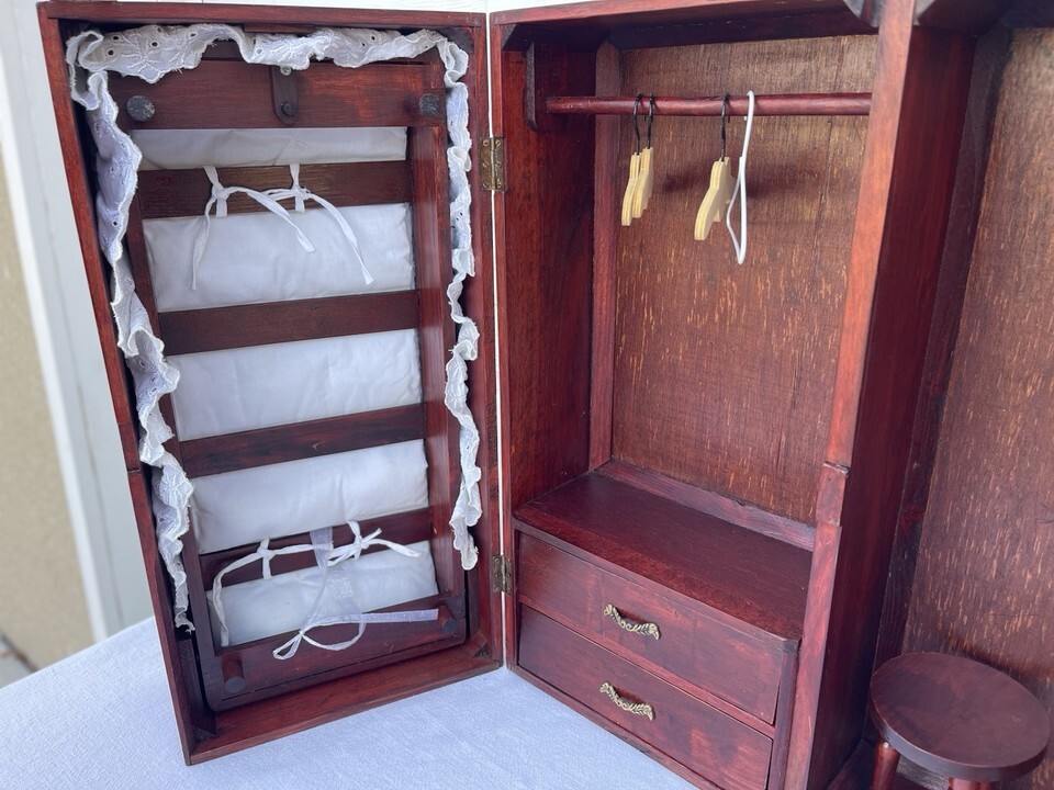 Primary image for VTG American Girl Wood Doll Carry Case Wardrobe Trunk w/BED,Comforter & Extras